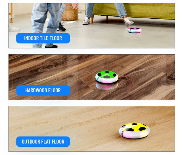 The Hover Football glides best on smooth surfaces like tile, wood, and low-pile carpet for optimal performance.