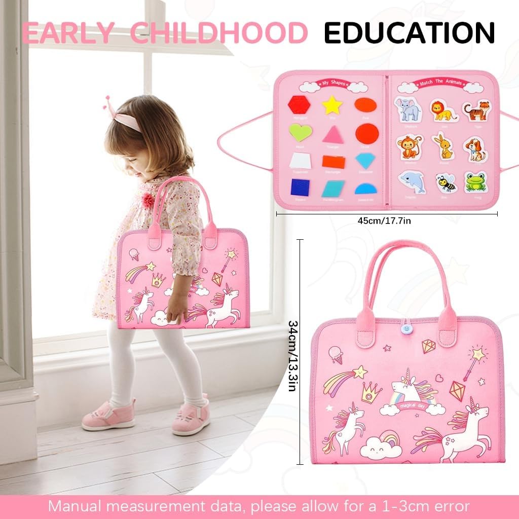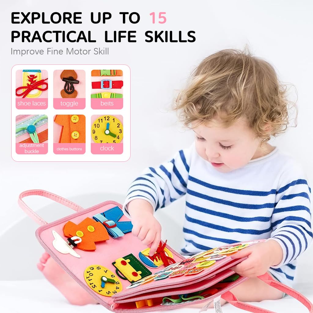 Yes, the Busy Board is made from non-toxic, child-safe materials with strong stitching to ensure durability and safety.